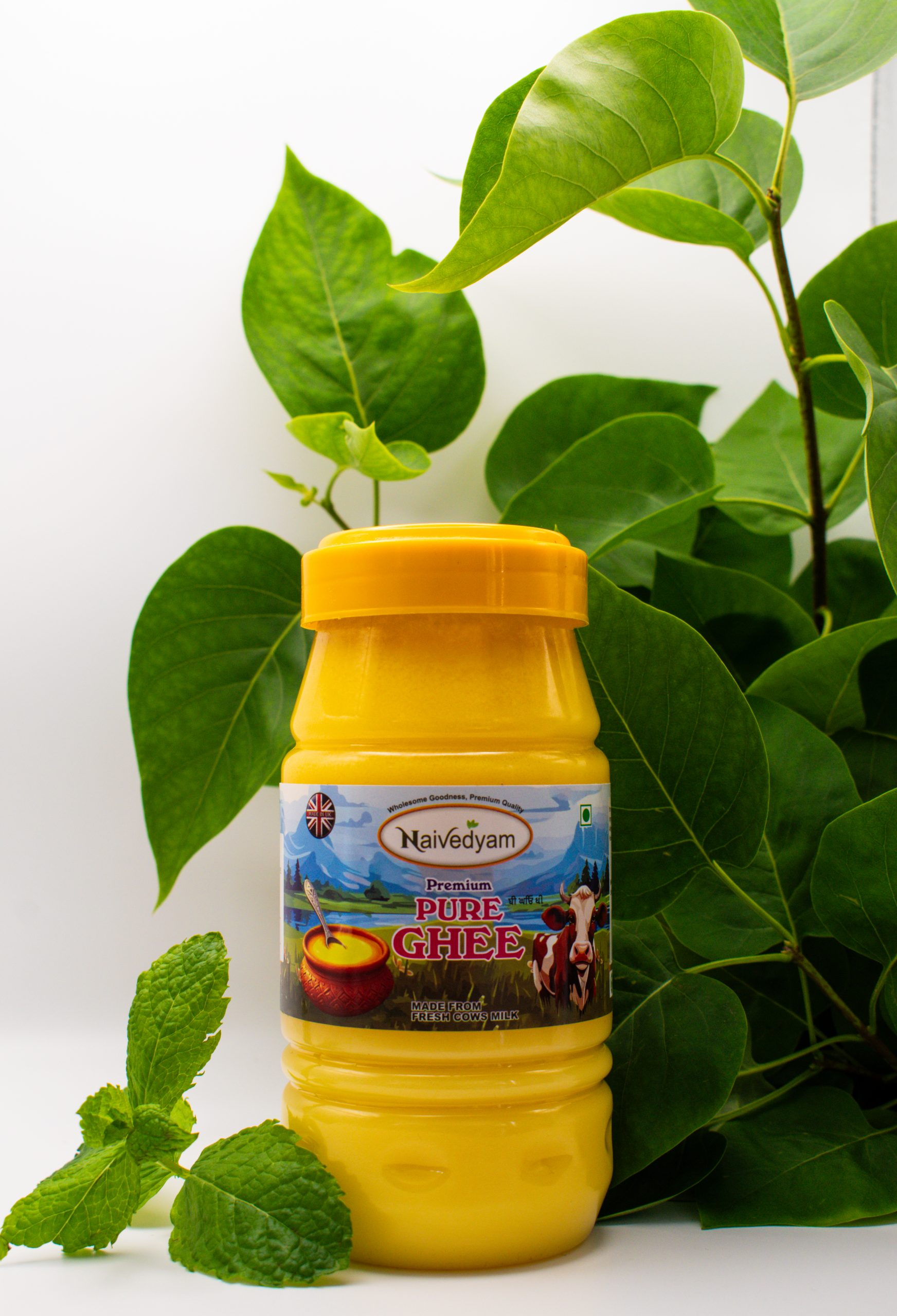 Naivedyam’s Pure Ghee is a tribute to the timeless traditions of Indian cooking. Made from fresh British Cow’s milk using age-old techniques, our ghee captures the rich aroma, deep flavor, and unmatched quality that have defined Indian cuisine for millennia. Whether used for cooking, baking, or drizzling over warm meals, its golden richness enhances every dish with an authentic touch of heritage.